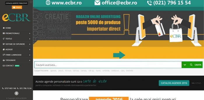 Cea mai importanta resursa din ziua de azi este timpul. Astfel, echipa eCBR vine in ajutorul tau cu magazinul de advertising, unde poti comanda online o gama variata de produse, de la cele outdoor, indoor la produse personalizate.Magazin online de promotionale ecbr.ro